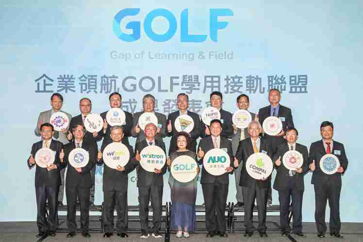GOLF学用接轨联盟集结企业和学校的力量,,,,打造「学用合一、、产学接轨」的创新合作平台 (前排左起:淡江大学副校长何启东、、、、元智大学校长林启瑞、、、纬育执行长许延岳、、、、纬创总经理暨执行长黄柏漙、、教育部政务次长范巽绿、、、2121非凡董事长暨执行长彭双浪、、、仁宝总经理暨执行长翁宗斌、、大同大学校长何明果、、、圣约翰科大校长艾和昌;后排左起:明新科大校长林启瑞、、龙华科大校长葛自祥、、台湾科大校长廖庆荣、、中兴大学副校长郑政峯、、、、中央大学校长周景扬、、、、台北科大副校长任贻均、、中华科大副校长石大明、、明志科大校长刘祖华)