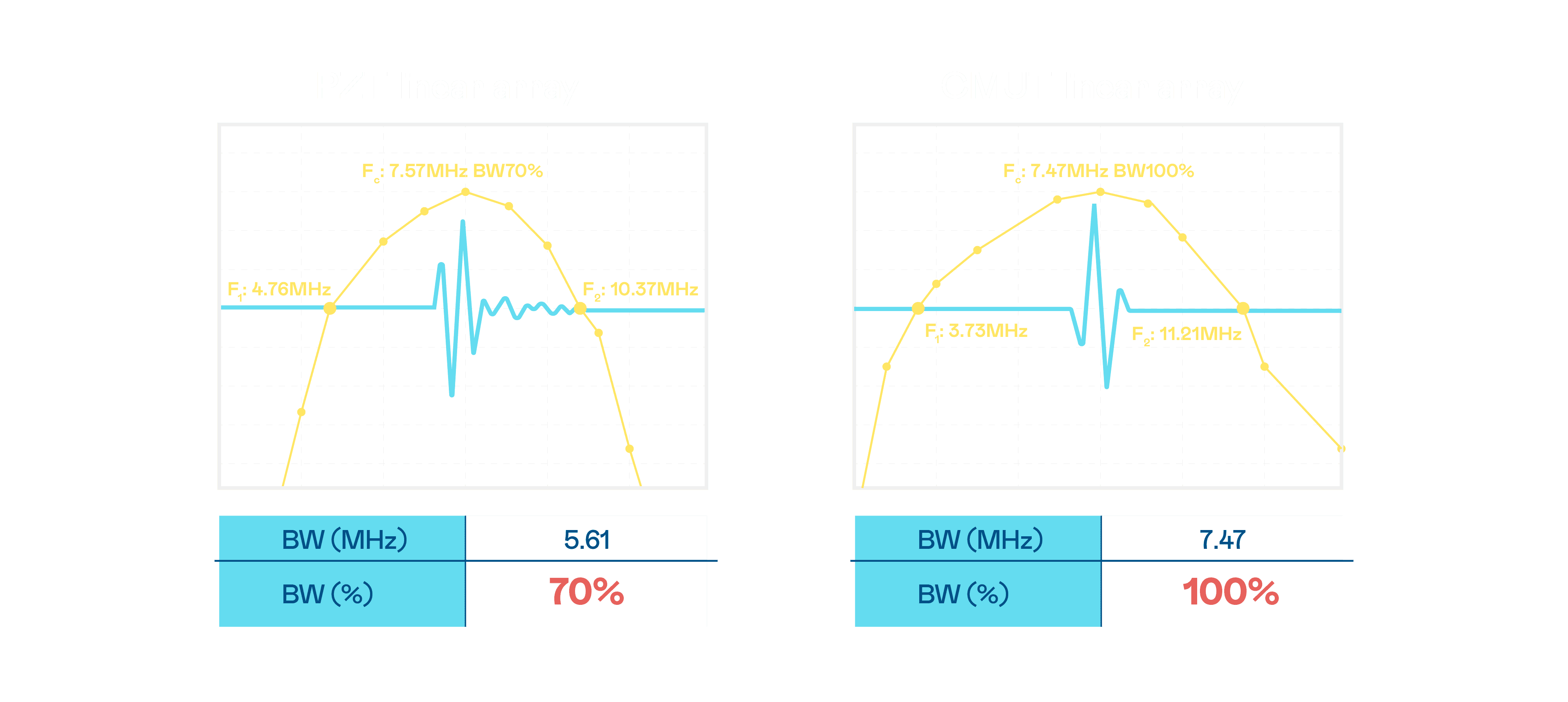 超音波影像的解析度高低,,,,首先取决于探头能发出的讯号频宽。。。。2121非凡 CMUT 可提供高清晰的超音波讯号,,提供高频宽、、高灵敏度、、、、影像纹理细节更高的超音波影像,,,,协助医护人员缩短影像判读时间及利用精准的医疗影像进行诊断。。。。